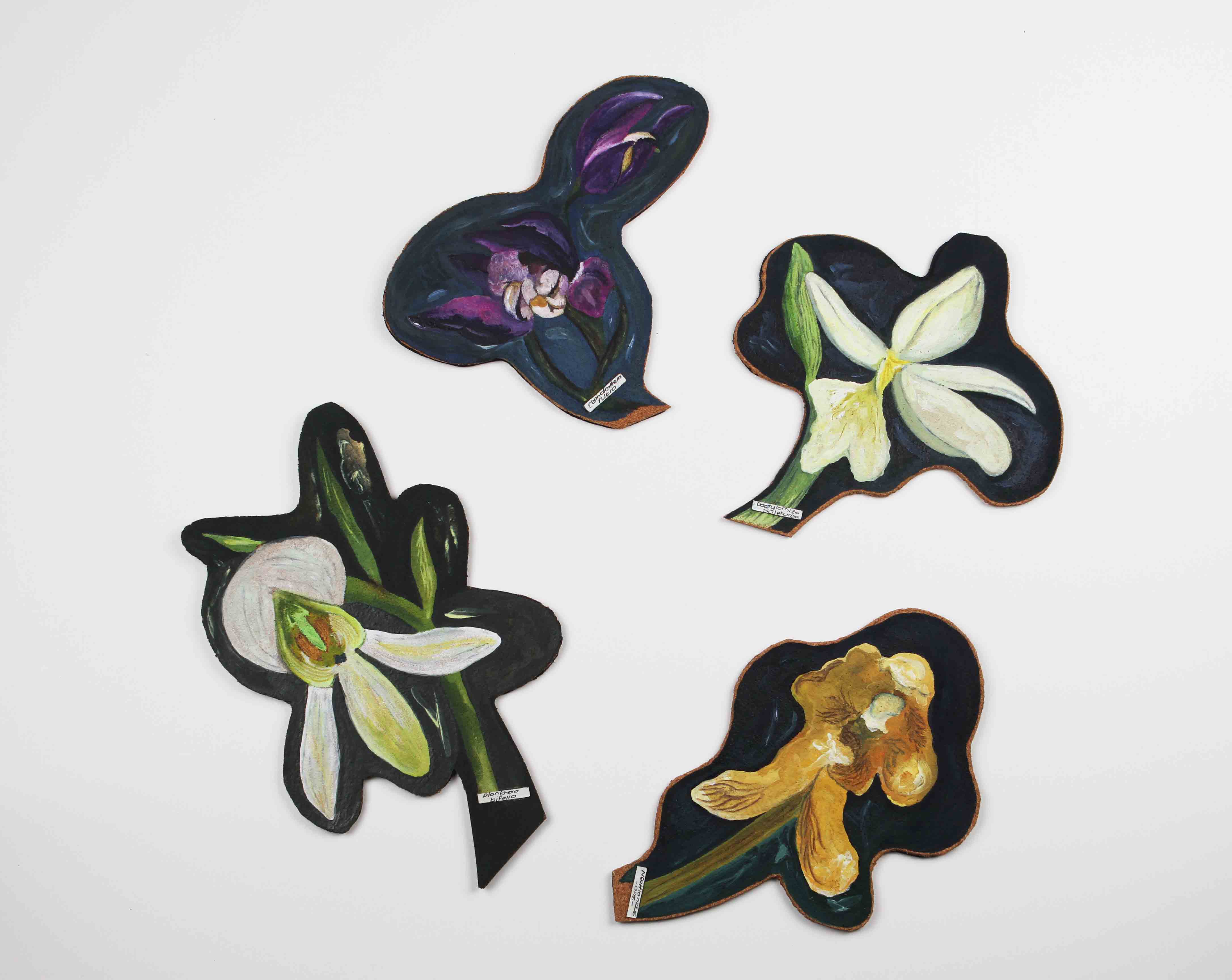 Mixed Media: Watercolours on Cork, wood, biodegradable recycled packaging cardboard